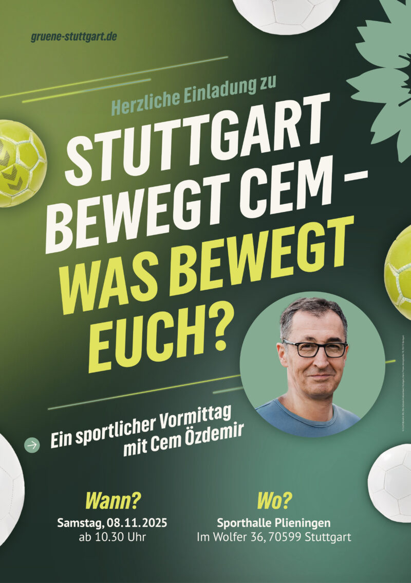 „Stuttgart bewegt Cem – was bewegt Euch?“ 🚀 Finde es heraus – beim sportlichen Vormittag mit Cem Özdemir. Zuerst stehen eine Übungseinheit im Handball und danach ein Get-together mit dem grünen Spitzenkandidaten auf dem Programm.