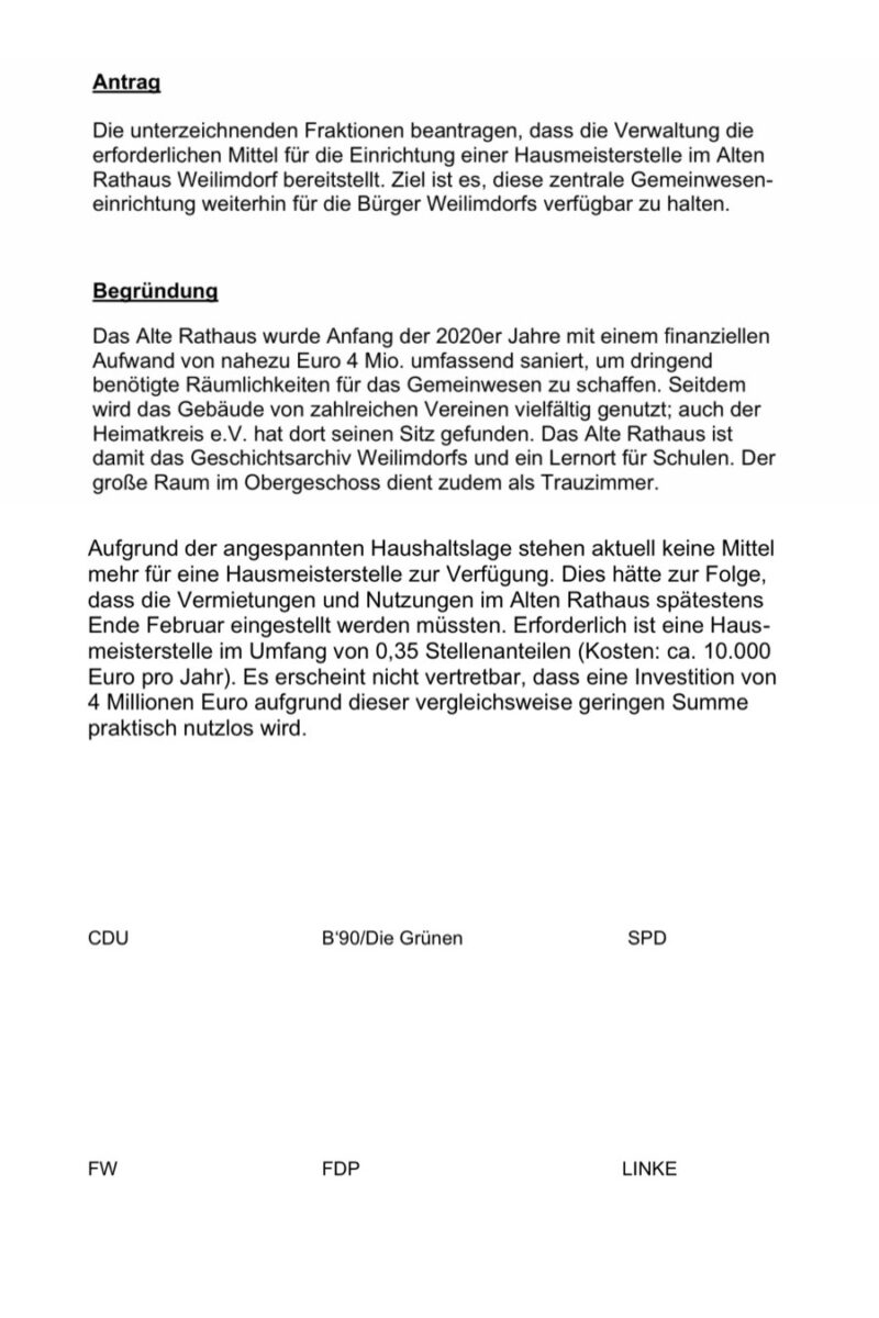 Betreff: Mittel für eine Hausmeisterstelle im Alten Rathaus Weilimdorf