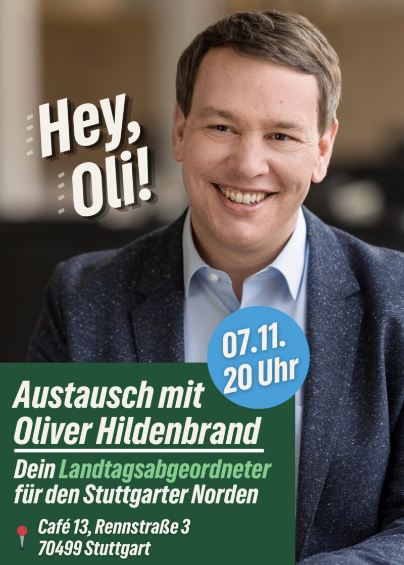 Politische Anliegen, Anregungen, Ideen oder Fragen: Alle Interessierten aus dem Stuttgarter Norden sind herzlich zur nächsten Bürger*innen-Sprechstunde von Oliver Hildenbrand eingeladen — Montag, 18. September, 14 – 17 Uhr. „Ich freue mich wieder auf die persönlichen Begegnungen und den unmittelbaren Austausch vor Ort“, so der direkt gewählte GRÜNEN-Landtagsabgeordnete für den Wahlkreis Stuttgart III. Hildenbrand ist u. a. stellvertretender Fraktionsvorsitzender, Mitglied im Innen- sowie Sozialauschuss und leitet als Vorsitzender das Parlamentarische Kontrollgremium, das die Aktivitäten des Verfassungsschutzes mitüberwacht.