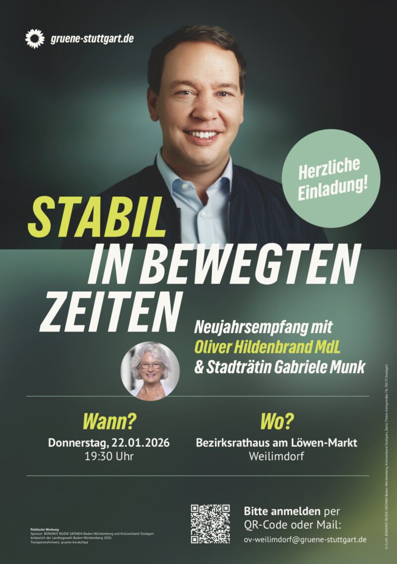 Zeit: 18:00 – 19:30 Uhr. Die Zugangsdaten bekommt man über Grüne Stuttgart (QR-Code, Facebook, Webseite gruene-stuttgart.de oder per Mail info@gruene-stuttgart.de).